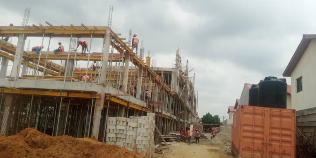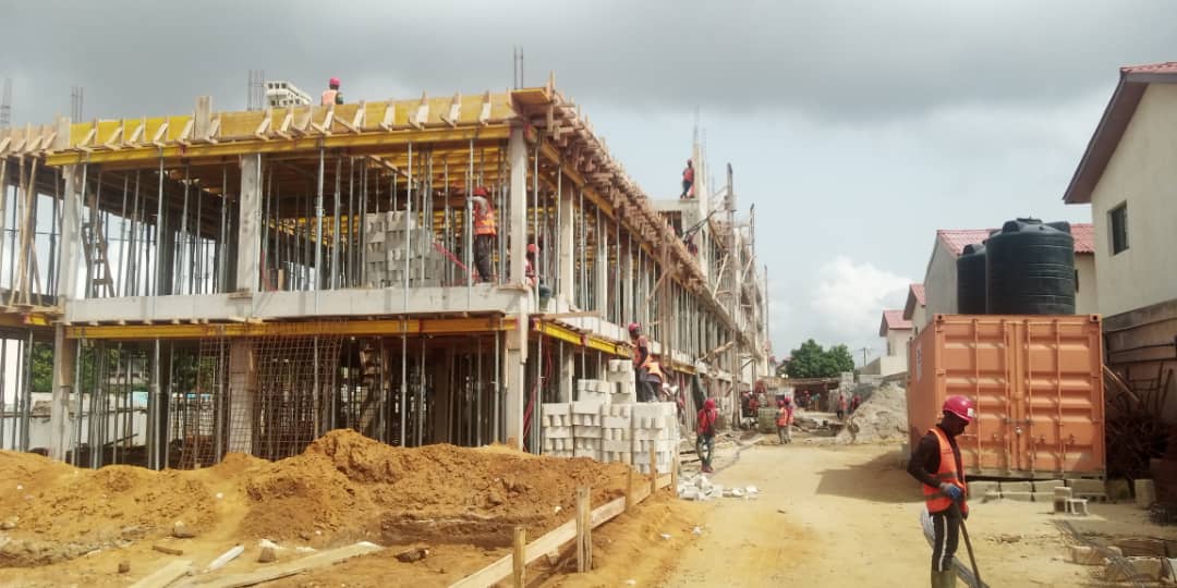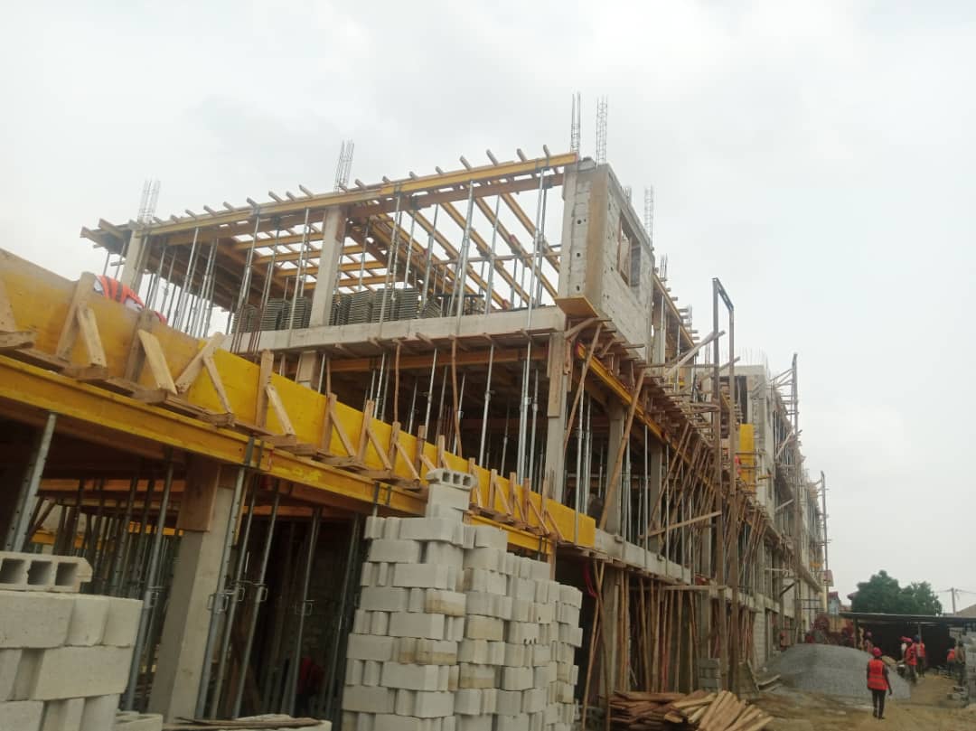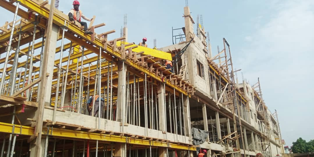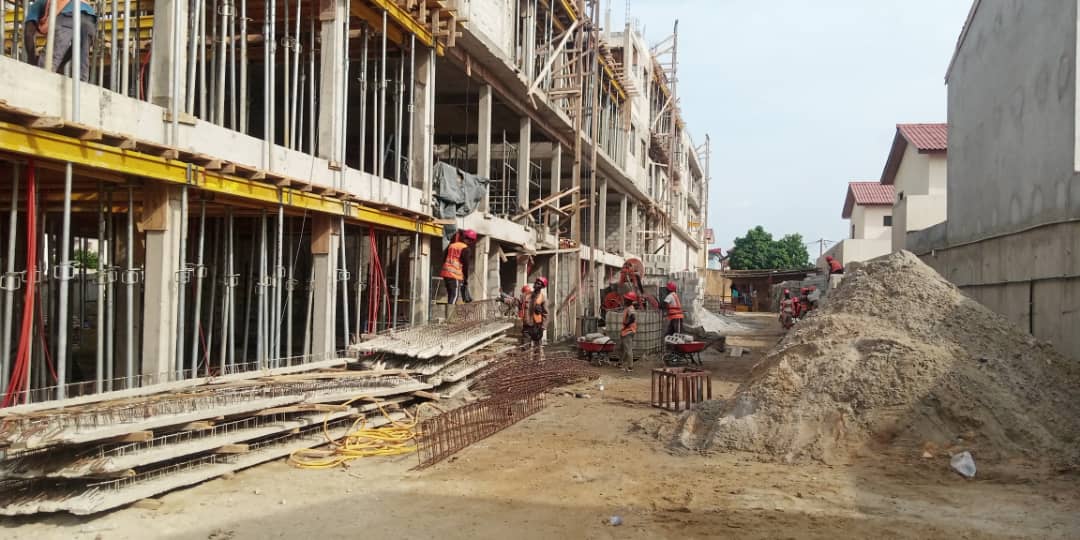 Travaux de construction 5 immeubles R+2 dont 16 Magasins et 20 Appartements de 3 pièces.